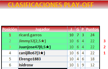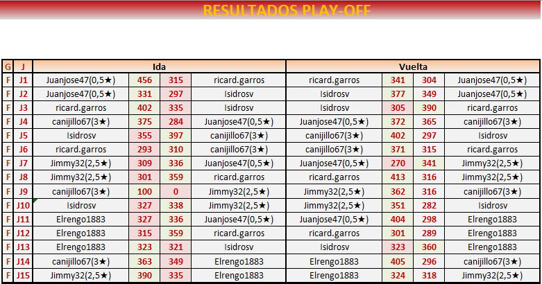 Fin PLAY OFF VUELTA: 25 de SEPTIEMBRE a las 21:00