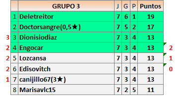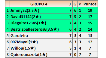 Deja un comentarioEn está página se irán publicando los resultados de las diferentes partidas, siendo ambos jugadores responsables de subirlos o de comprobar que ya hayan sido publicados insertando un COMENTARIO en la parte inferior de la pantalla (opción “Deja tu comentario”), indicando el nombre de los dos jugadores y los puntos obtenidos en la partida.