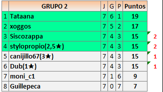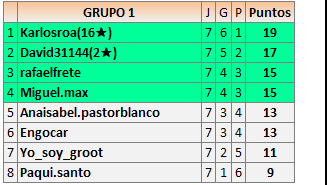 Deja un comentarioEn está página se irán publicando los resultados de las diferentes partidas, siendo ambos jugadores responsables de subirlos o de comprobar que ya hayan sido publicados insertando un COMENTARIO en la parte inferior de la pantalla (opción “Deja tu comentario”), indicando el nombre de los dos jugadores y los puntos obtenidos en la partida.