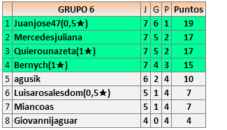 Deja un comentarioEn está página se irán publicando los resultados de las diferentes partidas, siendo ambos jugadores responsables de subirlos o de comprobar que ya hayan sido publicados insertando un COMENTARIO en la parte inferior de la pantalla (opción “Deja tu comentario”), indicando el nombre de los dos jugadores y los puntos obtenidos en la partida.