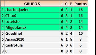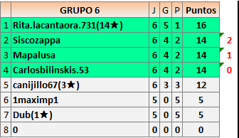 Deja un comentarioEn está página se irán publicando los resultados de las diferentes partidas, siendo ambos jugadores responsables de subirlos o de comprobar que ya hayan sido publicados insertando un COMENTARIO en la parte inferior de la pantalla (opción “Deja tu comentario”), indicando el nombre de los dos jugadores y los puntos obtenidos en la partida.