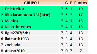 Yo Informé debidamente de las 3 partidas que faltan, las gane las 3, y habéis eliminado el comentario sin contabilizar las. Esto puede desvirtuar el grupo