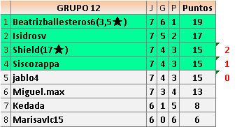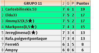Deja un comentarioEn está página se irán publicando los resultados de las diferentes partidas, siendo ambos jugadores responsables de subirlos o de comprobar que ya hayan sido publicados insertando un COMENTARIO en la parte inferior de la pantalla (opción “Deja tu comentario”), indicando el nombre de los dos jugadores y los puntos obtenidos en la partida.