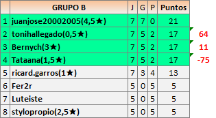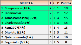 Deja un comentarioEn está página se irán publicando los resultados de las diferentes partidas, siendo ambos jugadores responsables de subirlos o de comprobar que ya hayan sido publicados insertando un COMENTARIO en la parte inferior de la pantalla (opción “Deja tu comentario”), indicando el nombre de los dos jugadores y los puntos obtenidos en la partida.