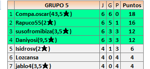 Deja un comentarioEn está página se irán publicando los resultados de las diferentes partidas, siendo ambos jugadores responsables de subirlos o de comprobar que ya hayan sido publicados insertando un COMENTARIO en la parte inferior de la pantalla (opción “Deja tu comentario”), indicando el nombre de los dos jugadores y los puntos obtenidos en la partida.