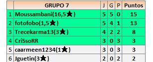 Deja un comentarioEn está página se irán publicando los resultados de las diferentes partidas, siendo ambos jugadores responsables de subirlos o de comprobar que ya hayan sido publicados insertando un COMENTARIO en la parte inferior de la pantalla (opción “Deja tu comentario”), indicando el nombre de los dos jugadores y los puntos obtenidos en la partida.