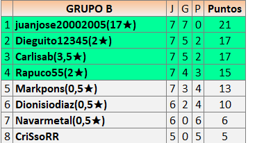 Deja un comentarioEn está página se irán publicando los resultados de las diferentes partidas, siendo ambos jugadores responsables de subirlos o de comprobar que ya hayan sido publicados insertando un COMENTARIO en la parte inferior de la pantalla (opción “Deja tu comentario”), indicando el nombre de los dos jugadores y los puntos obtenidos en la partida.