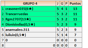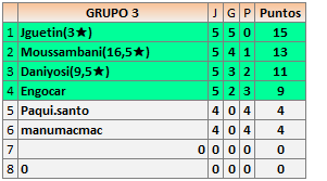 Deja un comentarioEn está página se irán publicando los resultados de las diferentes partidas, siendo ambos jugadores responsables de subirlos o de comprobar que ya hayan sido publicados insertando un COMENTARIO en la parte inferior de la pantalla (opción “Deja tu comentario”), indicando el nombre de los dos jugadores y los puntos obtenidos en la partida.