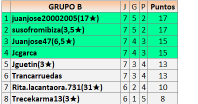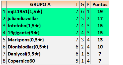 Deja un comentarioEn está página se irán publicando los resultados de las diferentes partidas, siendo ambos jugadores responsables de subirlos o de comprobar que ya hayan sido publicados insertando un COMENTARIO en la parte inferior de la pantalla (opción “Deja tu comentario”), indicando el nombre de los dos jugadores y los puntos obtenidos en la partida.
