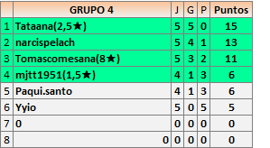 Deja un comentarioEn está página se irán publicando los resultados de las diferentes partidas, siendo ambos jugadores responsables de subirlos o de comprobar que ya hayan sido publicados insertando un COMENTARIO en la parte inferior de la pantalla (opción “Deja tu comentario”), indicando el nombre de los dos jugadores y los puntos obtenidos en la partida.