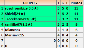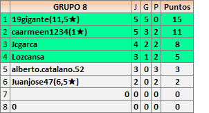 Deja un comentarioEn está página se irán publicando los resultados de las diferentes partidas, siendo ambos jugadores responsables de subirlos o de comprobar que ya hayan sido publicados insertando un COMENTARIO en la parte inferior de la pantalla (opción “Deja tu comentario”), indicando el nombre de los dos jugadores y los puntos obtenidos en la partida.