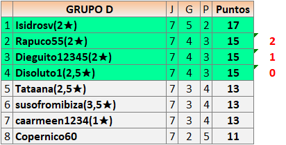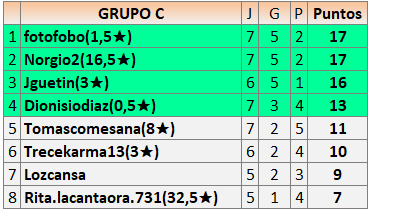 Deja un comentarioEn está página se irán publicando los resultados de las diferentes partidas, siendo ambos jugadores responsables de subirlos o de comprobar que ya hayan sido publicados insertando un COMENTARIO en la parte inferior de la pantalla (opción “Deja tu comentario”), indicando el nombre de los dos jugadores y los puntos obtenidos en la partida.