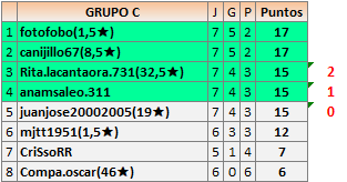Deja un comentarioEn está página se irán publicando los resultados de las diferentes partidas, siendo ambos jugadores responsables de subirlos o de comprobar que ya hayan sido publicados insertando un COMENTARIO en la parte inferior de la pantalla (opción “Deja tu comentario”), indicando el nombre de los dos jugadores y los puntos obtenidos en la partida.