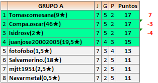 Deja un comentarioEn está página se irán publicando los resultados de las diferentes partidas, siendo ambos jugadores responsables de subirlos o de comprobar que ya hayan sido publicados insertando un COMENTARIO en la parte inferior de la pantalla (opción “Deja tu comentario”), indicando el nombre de los dos jugadores y los puntos obtenidos en la partida.