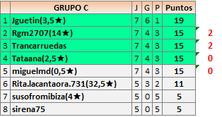 Deja un comentarioEn está página se irán publicando los resultados de las diferentes partidas, siendo ambos jugadores responsables de subirlos o de comprobar que ya hayan sido publicados insertando un COMENTARIO en la parte inferior de la pantalla (opción “Deja tu comentario”), indicando el nombre de los dos jugadores y los puntos obtenidos en la partida.