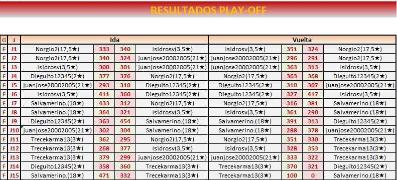Fin PLAY OFF VUELTAA: 26 DE FEBRERO a las 21:00