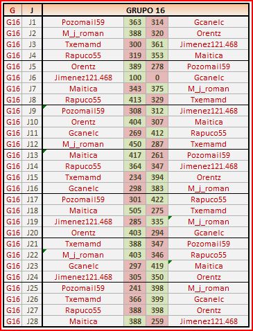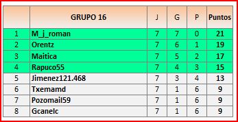 Deja un comentarioEn está página se irán publicando los resultados de las diferentes partidas, siendo el vencedor el encargado de hacerlo, insertando un COMENTARIO en la parte inferior de la pantalla (opción “Deja tu comentario“), indicando el nombre de los dos jugadores y los puntos obtenidos en la partida.