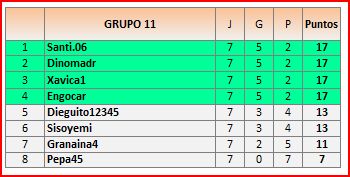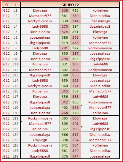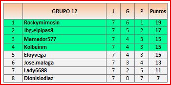 Deja un comentarioEn está página se irán publicando los resultados de las diferentes partidas, siendo ambos jugadores los responsables de subirlos, o comprobando que ya hayan sido subidos, insertando un COMENTARIO en la parte inferior de la pantalla (opción “Deja tu comentario“), indicando el nombre de los dos jugadores y los puntos obtenidos en la partida.