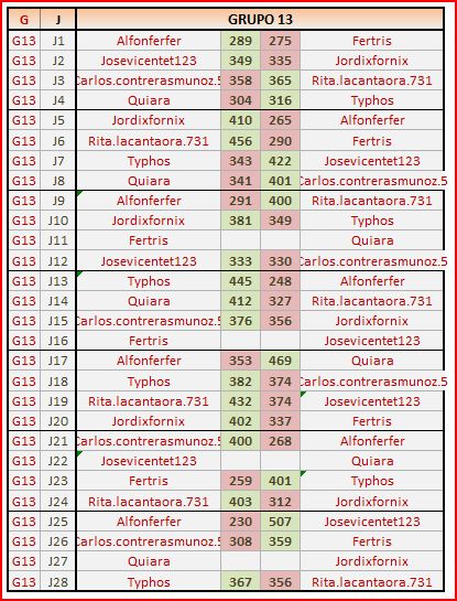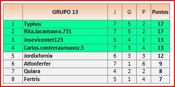 Deja un comentarioEn está página se irán publicando los resultados de las diferentes partidas, siendo ambos jugadores los responsables de subirlos, o comprobando que ya hayan sido subidos, insertando un COMENTARIO en la parte inferior de la pantalla (opción “Deja tu comentario“), indicando el nombre de los dos jugadores y los puntos obtenidos en la partida.