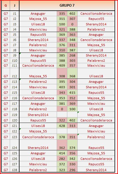 Deja un comentarioEn está página se irán publicando los resultados de las diferentes partidas, siendo ambos jugadores los responsables de subirlos, o comprobando que ya hayan sido subidos, insertando un COMENTARIO en la parte inferior de la pantalla (opción “Deja tu comentario“), indicando el nombre de los dos jugadores y los puntos obtenidos en la partida.
