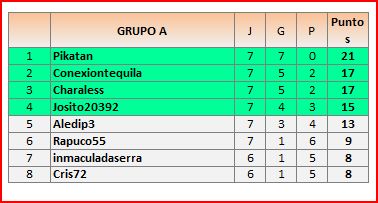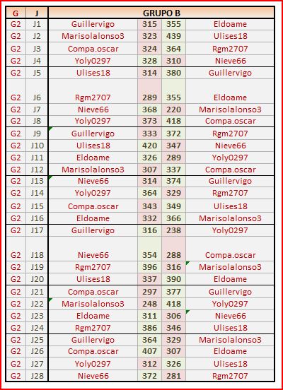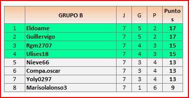 Deja un comentarioEn está página se irán publicando los resultados de las diferentes partidas, siendo ambos jugadores los responsables de subirlos, o comprobando que ya hayan sido subidos, insertando un COMENTARIO en la parte inferior de la pantalla (opción “Deja tu comentario“), indicando el nombre de los dos jugadores y los puntos obtenidos en la partida.