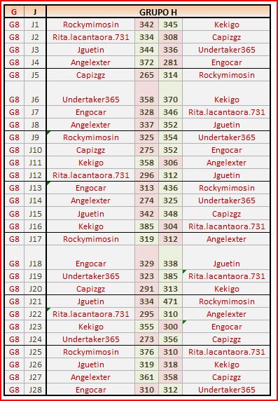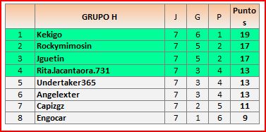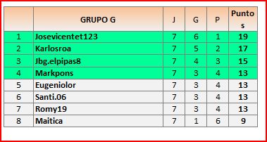 Deja un comentarioEn está página se irán publicando los resultados de las diferentes partidas, siendo ambos jugadores los responsables de subirlos, o comprobando que ya hayan sido subidos, insertando un COMENTARIO en la parte inferior de la pantalla (opción “Deja tu comentario“), indicando el nombre de los dos jugadores y los puntos obtenidos en la partida.