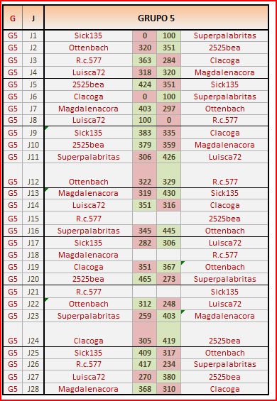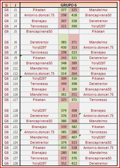 Deja un comentarioEn está página se irán publicando los resultados de las diferentes partidas, siendo ambos jugadores los responsables de subirlos, o comprobando que ya hayan sido subidos, insertando un COMENTARIO en la parte inferior de la pantalla (opción “Deja tu comentario“), indicando el nombre de los dos jugadores y los puntos obtenidos en la partida.
