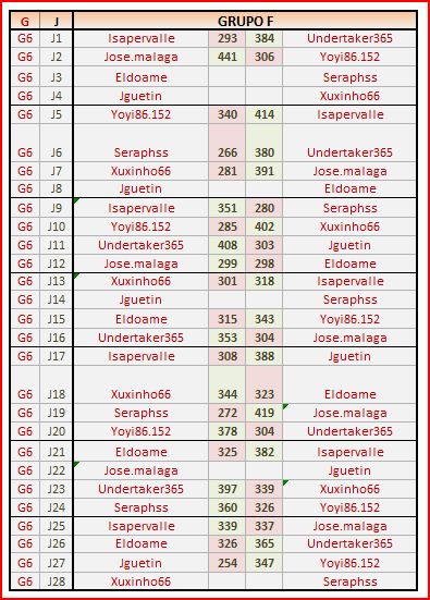Deja un comentarioEn está página se irán publicando los resultados de las diferentes partidas, siendo ambos jugadores los responsables de subirlos, o comprobando que ya hayan sido subidos, insertando un COMENTARIO en la parte inferior de la pantalla (opción “Deja tu comentario“), indicando el nombre de los dos jugadores y los puntos obtenidos en la partida.