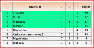 Deja un comentarioEn está página se irán publicando los resultados de las diferentes partidas, siendo ambos jugadores los responsables de subirlos, o comprobando que ya hayan sido subidos, insertando un COMENTARIO en la parte inferior de la pantalla (opción “Deja tu comentario“), indicando el nombre de los dos jugadores y los puntos obtenidos en la partida.