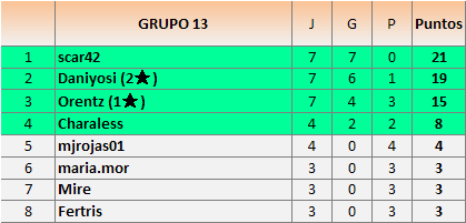 Deja un comentarioEn está página se irán publicando los resultados de las diferentes partidas, siendo ambos jugadores los responsables de subirlos, o comprobando que ya hayan sido subidos, insertando un COMENTARIO en la parte inferior de la pantalla (opción «Deja tu comentario«), indicando el nombre de los dos jugadores y los puntos obtenidos en la partida.