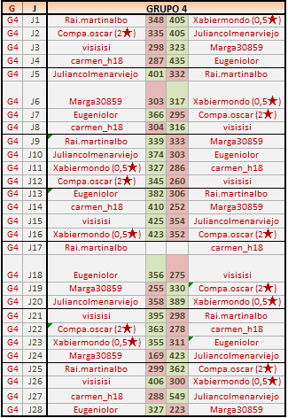 Deja un comentarioEn está página se irán publicando los resultados de las diferentes partidas, siendo ambos jugadores los responsables de subirlos, o comprobando que ya hayan sido subidos, insertando un COMENTARIO en la parte inferior de la pantalla (opción «Deja tu comentario«), indicando el nombre de los dos jugadores y los puntos obtenidos en la partida.