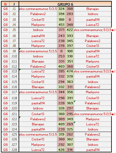 Deja un comentarioEn está página se irán publicando los resultados de las diferentes partidas, siendo ambos jugadores los responsables de subirlos, o comprobando que ya hayan sido subidos, insertando un COMENTARIO en la parte inferior de la pantalla (opción «Deja tu comentario«), indicando el nombre de los dos jugadores y los puntos obtenidos en la partida.