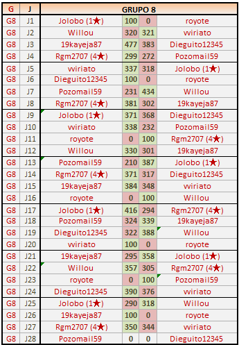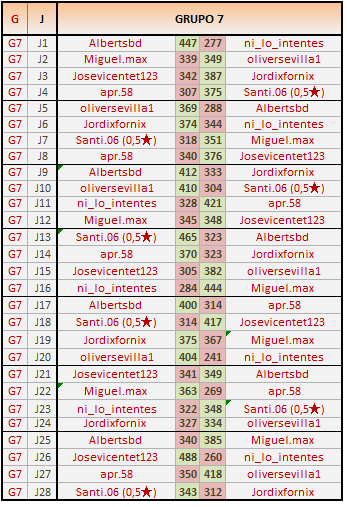Deja un comentarioEn está página se irán publicando los resultados de las diferentes partidas, siendo ambos jugadores los responsables de subirlos, o comprobando que ya hayan sido subidos, insertando un COMENTARIO en la parte inferior de la pantalla (opción «Deja tu comentario«), indicando el nombre de los dos jugadores y los puntos obtenidos en la partida.