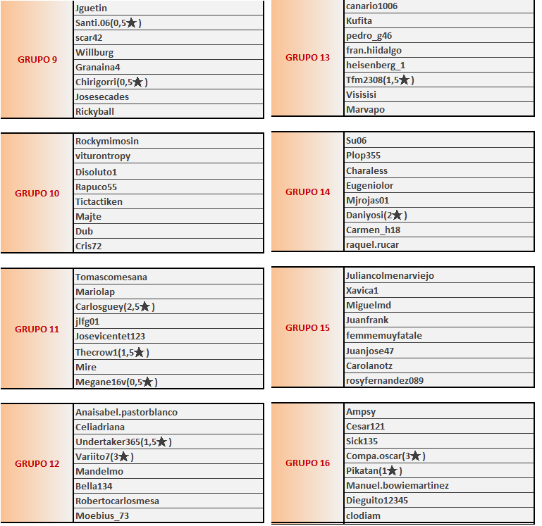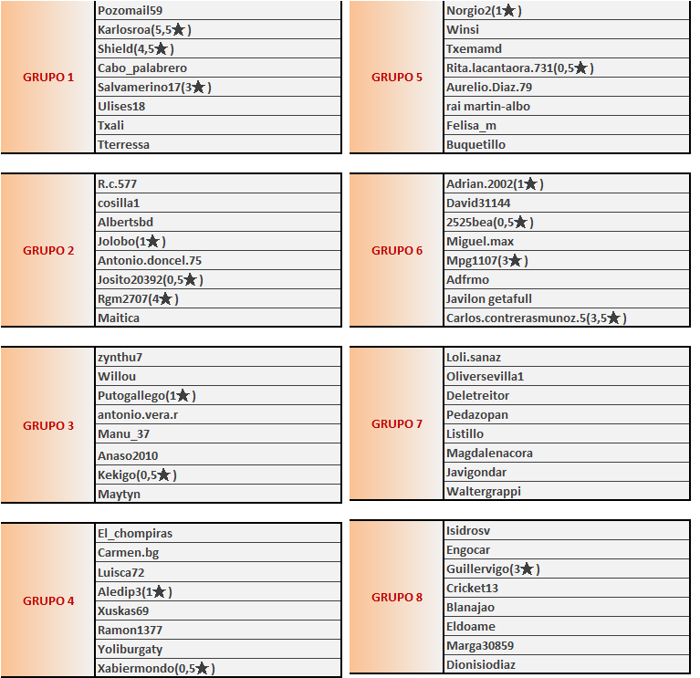 Desde 01/01/2014, las reglas de todos los torneos figuran en una pestaña general.