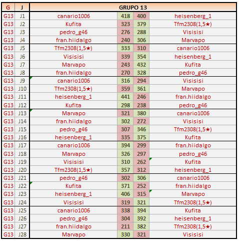 Deja un comentarioEn está página se irán publicando los resultados de las diferentes partidas, siendo ambos jugadores los responsables de subirlos, o comprobando que ya hayan sido subidos, insertando un COMENTARIO en la parte inferior de la pantalla (opción “Deja tu comentario“), indicando el nombre de los dos jugadores y los puntos obtenidos en la partida.