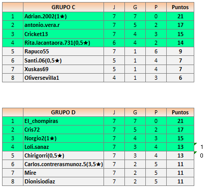 Deja un comentarioEn está página se irán publicando los resultados de las diferentes partidas, siendo ambos jugadores los responsables de subirlos, o comprobando que ya hayan sido subidos, insertando un COMENTARIO en la parte inferior de la pantalla (opción “Deja tu comentario“), indicando el nombre de los dos jugadores y los puntos obtenidos en la partida.