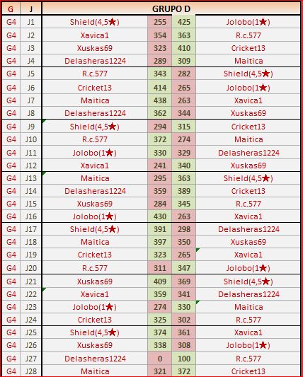 Deja un comentarioEn está página se irán publicando los resultados de las diferentes partidas, siendo ambos jugadores los responsables de subirlos, o comprobando que ya hayan sido subidos, insertando un COMENTARIO en la parte inferior de la pantalla (opción “Deja tu comentario“), indicando el nombre de los dos jugadores y los puntos obtenidos en la partida.