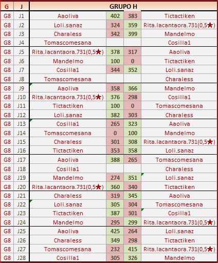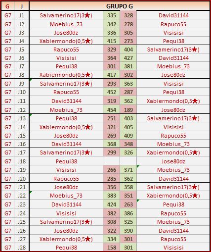 Deja un comentarioEn está página se irán publicando los resultados de las diferentes partidas, siendo ambos jugadores los responsables de subirlos, o comprobando que ya hayan sido subidos, insertando un COMENTARIO en la parte inferior de la pantalla (opción “Deja tu comentario“), indicando el nombre de los dos jugadores y los puntos obtenidos en la partida.