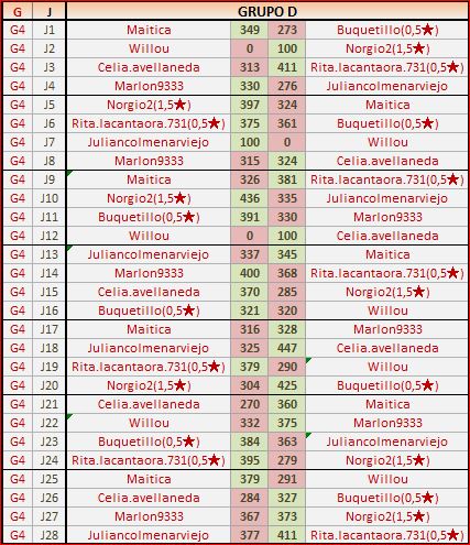 Deja un comentarioEn está página se irán publicando los resultados de las diferentes partidas, siendo ambos jugadores los responsables de subirlos, o comprobando que ya hayan sido subidos, insertando un COMENTARIO en la parte inferior de la pantalla (opción “Deja tu comentario“), indicando el nombre de los dos jugadores y los puntos obtenidos en la partida.
