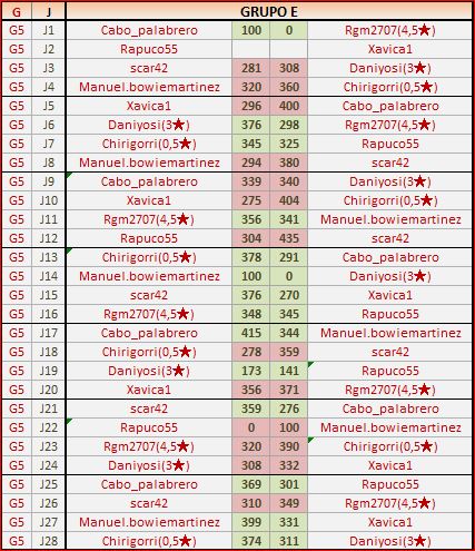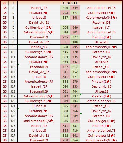 Deja un comentarioEn está página se irán publicando los resultados de las diferentes partidas, siendo ambos jugadores los responsables de subirlos, o comprobando que ya hayan sido subidos, insertando un COMENTARIO en la parte inferior de la pantalla (opción “Deja tu comentario“), indicando el nombre de los dos jugadores y los puntos obtenidos en la partida.