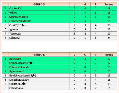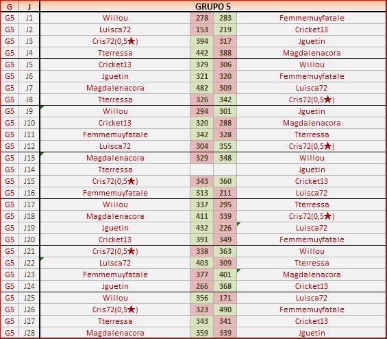 Deja un comentarioEn está página se irán publicando los resultados de las diferentes partidas, siendo ambos jugadores los responsables de subirlos, o comprobando que ya hayan sido subidos, insertando un COMENTARIO en la parte inferior de la pantalla (opción “Deja tu comentario“), indicando el nombre de los dos jugadores y los puntos obtenidos en la partida.