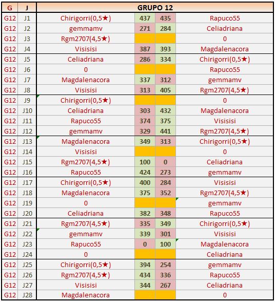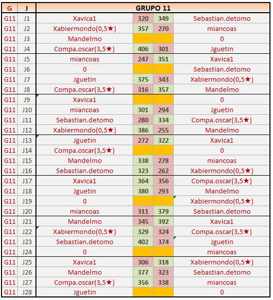 Deja un comentarioEn está página se irán publicando los resultados de las diferentes partidas, siendo ambos jugadores los responsables de subirlos, o comprobando que ya hayan sido subidos, insertando un COMENTARIO en la parte inferior de la pantalla (opción “Deja tu comentario“), indicando el nombre de los dos jugadores y los puntos obtenidos en la partida.