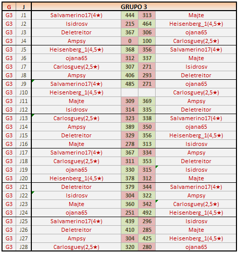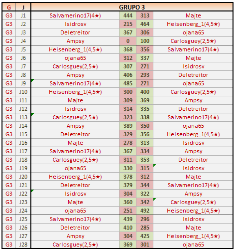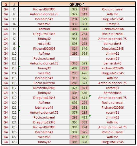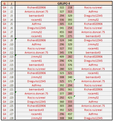 Deja un comentarioEn está página se irán publicando los resultados de las diferentes partidas, siendo ambos jugadores los responsables de subirlos, o comprobando que ya hayan sido subidos, insertando un COMENTARIO en la parte inferior de la pantalla (opción “Deja tu comentario“), indicando el nombre de los dos jugadores y los puntos obtenidos en la partida.