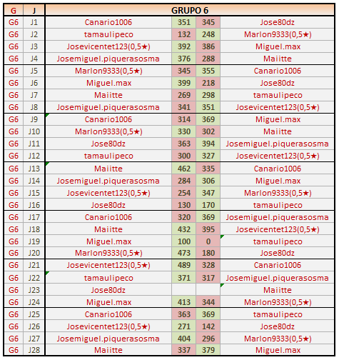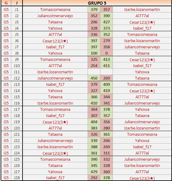 Deja un comentarioEn está página se irán publicando los resultados de las diferentes partidas, siendo ambos jugadores los responsables de subirlos, o comprobando que ya hayan sido subidos, insertando un COMENTARIO en la parte inferior de la pantalla (opción “Deja tu comentario“), indicando el nombre de los dos jugadores y los puntos obtenidos en la partida.