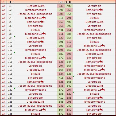 Deja un comentarioEn está página se irán publicando los resultados de las diferentes partidas, siendo ambos jugadores los responsables de subirlos, o comprobando que ya hayan sido subidos, insertando un COMENTARIO en la parte inferior de la pantalla (opción “Deja tu comentario“), indicando el nombre de los dos jugadores y los puntos obtenidos en la partida.