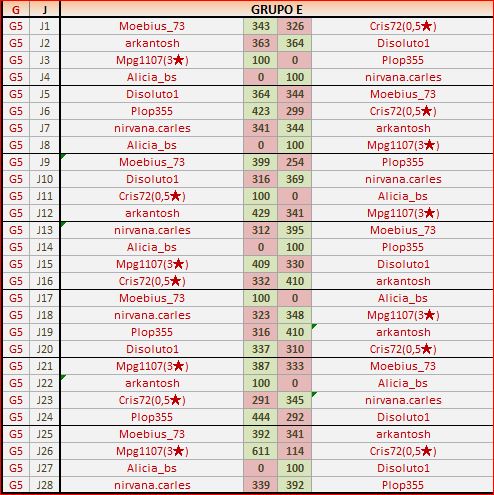 Deja un comentarioEn está página se irán publicando los resultados de las diferentes partidas, siendo ambos jugadores los responsables de subirlos, o comprobando que ya hayan sido subidos, insertando un COMENTARIO en la parte inferior de la pantalla (opción “Deja tu comentario“), indicando el nombre de los dos jugadores y los puntos obtenidos en la partida.
