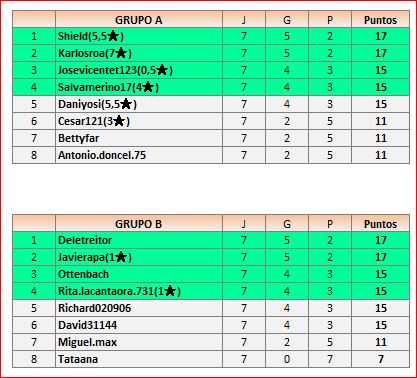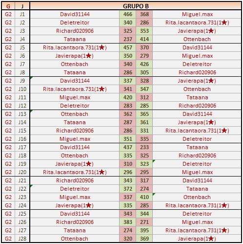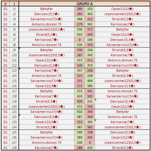 Deja un comentarioEn está página se irán publicando los resultados de las diferentes partidas, siendo ambos jugadores los responsables de subirlos, o comprobando que ya hayan sido subidos, insertando un COMENTARIO en la parte inferior de la pantalla (opción “Deja tu comentario“), indicando el nombre de los dos jugadores y los puntos obtenidos en la partida.