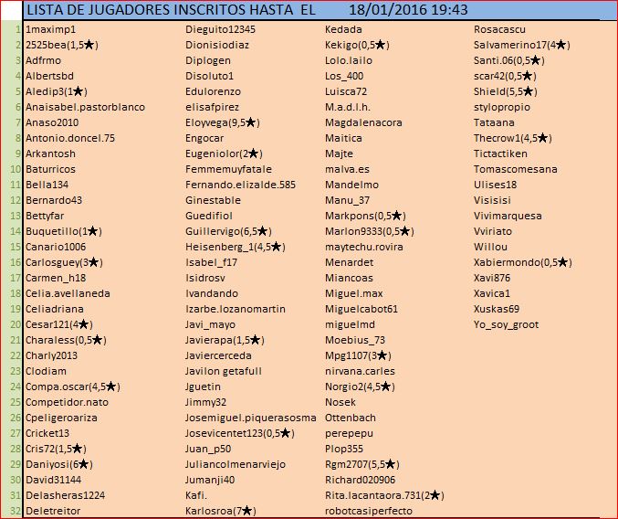 HASTA EL 15 DE ENERO O UN TOPE DE 80 JUGADORES