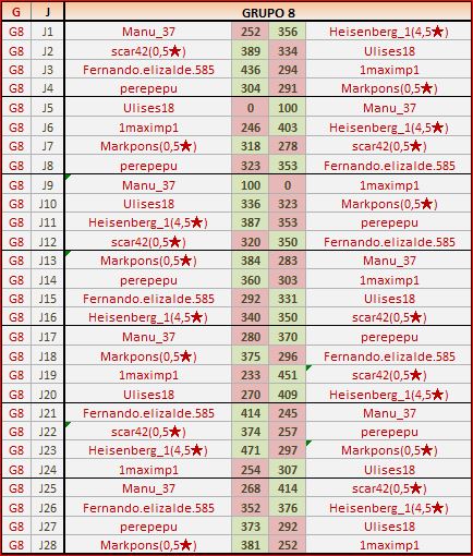 Deja un comentarioEn está página se irán publicando los resultados de las diferentes partidas, siendo ambos jugadores los responsables de subirlos, o comprobando que ya hayan sido subidos, insertando un COMENTARIO en la parte inferior de la pantalla (opción “Deja tu comentario“), indicando el nombre de los dos jugadores y los puntos obtenidos en la partida.