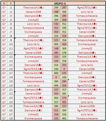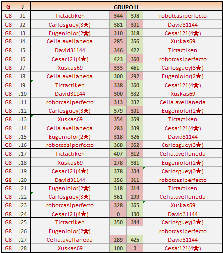 Deja un comentarioEn está página se irán publicando los resultados de las diferentes partidas, siendo ambos jugadores los responsables de subirlos, o comprobando que ya hayan sido subidos, insertando un COMENTARIO en la parte inferior de la pantalla (opción “Deja tu comentario“), indicando el nombre de los dos jugadores y los puntos obtenidos en la partida.